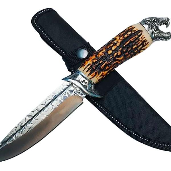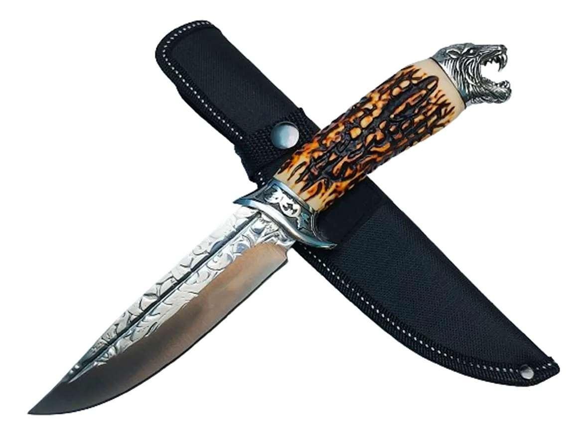 Faca Tatica Camping Tigre Cabo Tipo Osso Resinado Pescaria